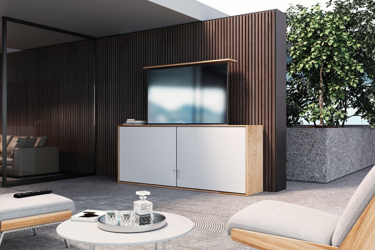 for installation in a TV cabinet, with SMART HOME control by Tuya APP + RF remote control, for screens 37“ - 80“ (94 - 203 cm), loads up to 60 kg