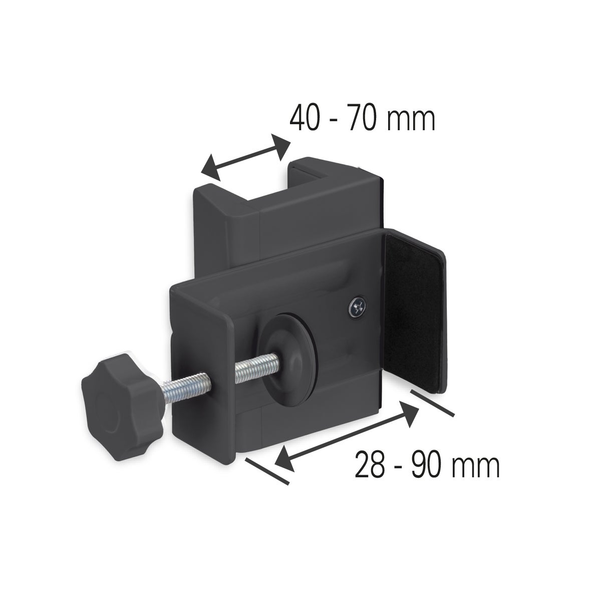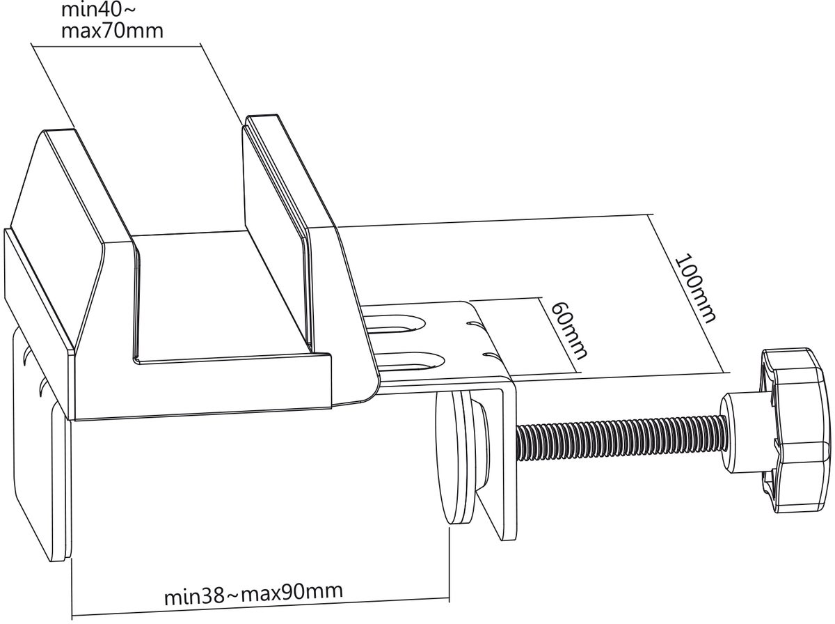 Description: For socket strips with a width of 40 - 70 mm, suggested desk legs width 38 - 90 mm.